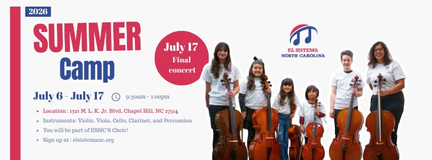 El Sistema North Carolina is a nonprofit organization that provides inclusive, high-quality music education to children and youth from all backgrounds. Through orchestral and ensemble training, we help students grow artistically, academically, and personally. Our mission is to transform lives and strengthen communities through the power of music.